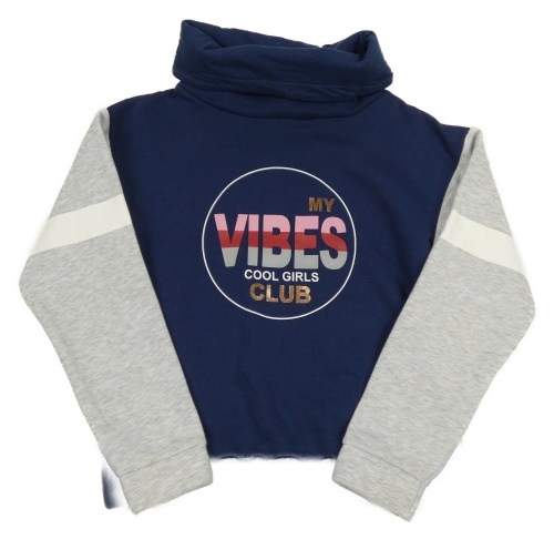 Tmavomodro-sivá mikina s nápisom a komínovým golierom Staccato