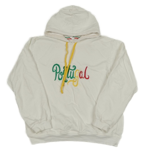 Biela mikina s nápisom a kapucňou