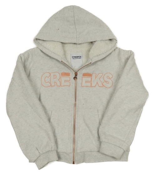 Sivá prepínaci zateplená mikina s nápisom a kapucňou Creeks