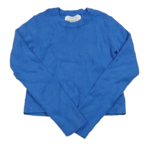 Modrý rebrovaný úpletový crop sveter ZARA