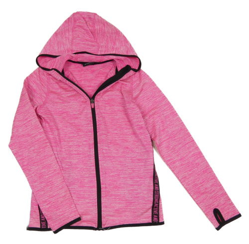 • Kriklavoě ružovo-čierna melírovaná funkčná športová prepínaci mikina s pruhom s nápismi a kapucňou ERGEENOMIXX