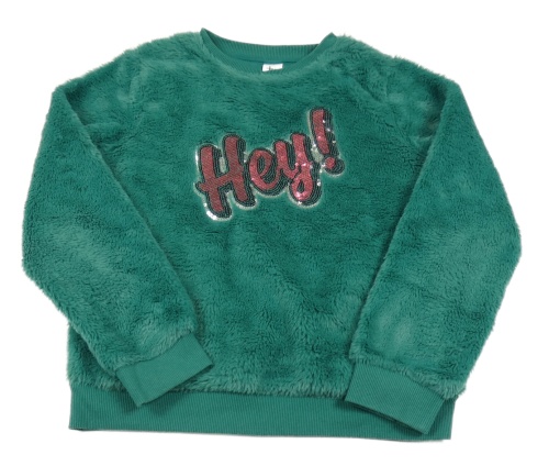 Zelená chlpatá podšitá mikina s nápisem z flitrů C&A