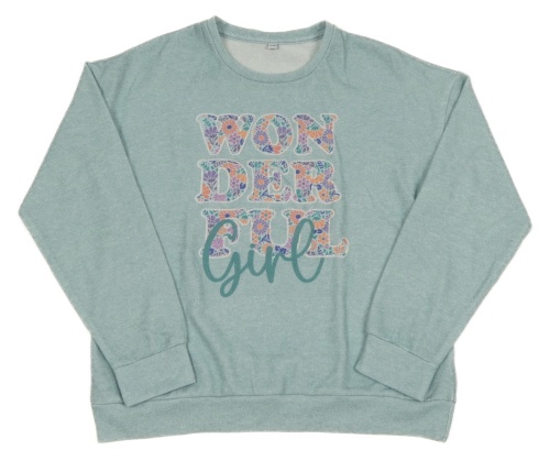 Svetlomodrý sveter s nápisom a kamienkami