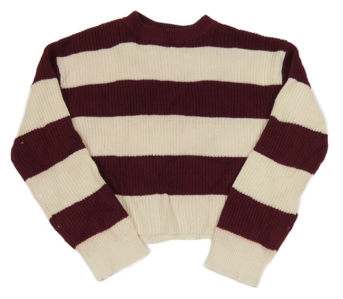 Vínovo-smotanový pruhovaný crop sveter H&M