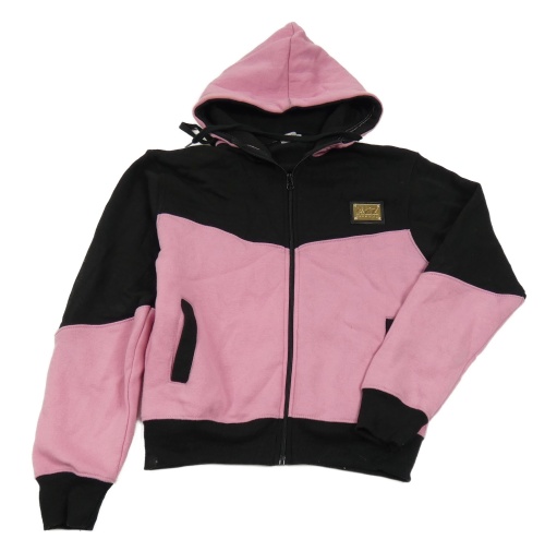 Ružovo-čierna prepínaci mikina s nášivkou a kapucňou