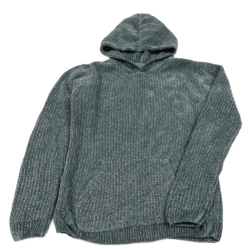 Břidlicový melírovaný rebrovaný žinylkový sveter s vreckom a kapucňou KIABI