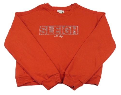 Červená crop mikina s nápisem z kamínků River Island