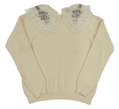 Vanilkový sveter s tylovým golierom a kamienkami River Island