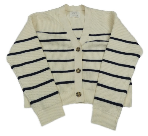 Smetanovo-čierny pruhovaný prepínaci crop sveter Zara