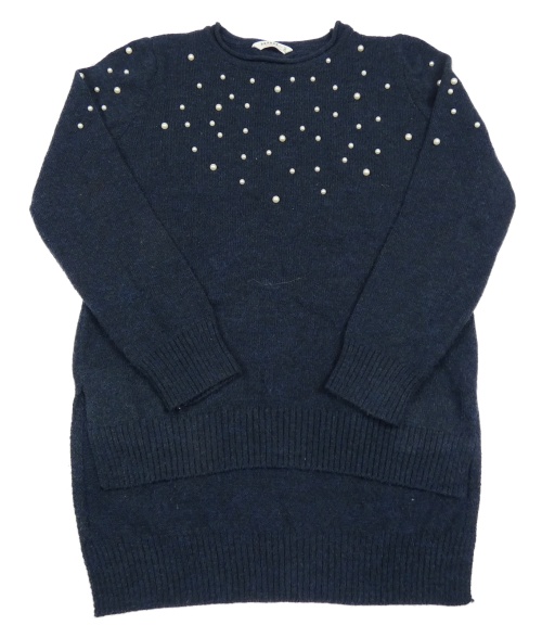 Tmavomodrý dlhý sveter s perlami Beeze