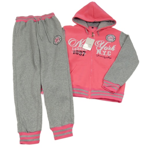Nové - 2set - Neónově ružovo-sivá prepínaci mikina s nápisom a kapucí + tepláky