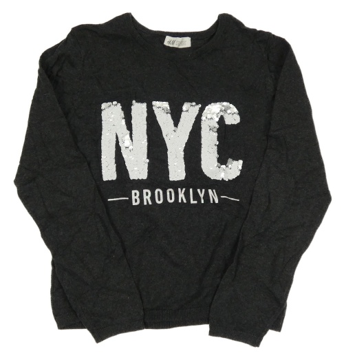 Tmavosivý ľahký sveter s nápisem z flitrů H&M