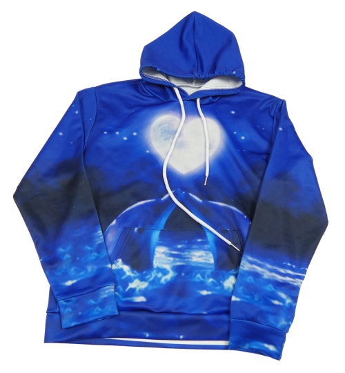 Safírovo-čierna mikina so srdcem, delfíny a9 kapucňou