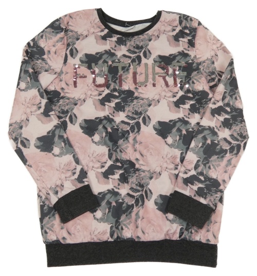 Ružovo-sivá kvetovaná mikina s nápisem z flitrů F&F