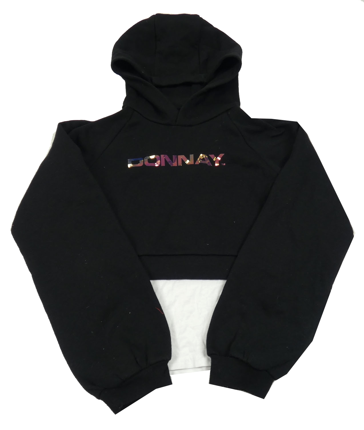 Čierna crop mikina s nápisem, všitým topem a kapucňou Donnay