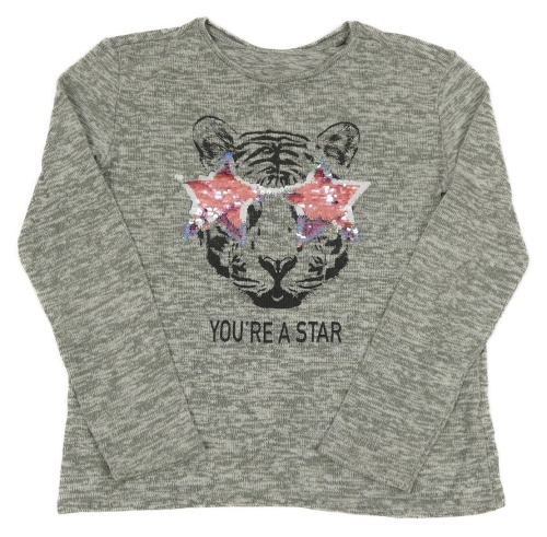 Sivý melírovaný ľahký sveter s tigrom a flitrami C&A