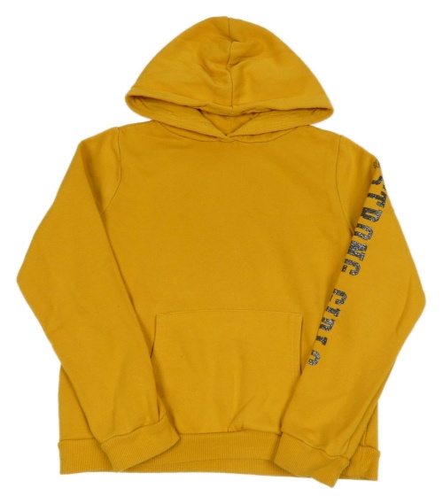 Horčicová mikina s vreckom a nápisom a číslom a kapucňou C&A