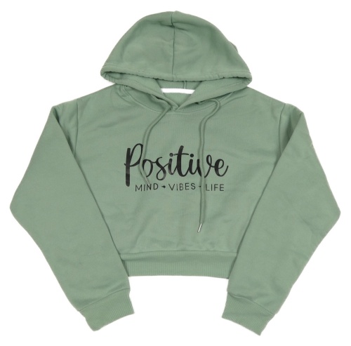 Olivová tepláková oversize crop mikina s nápismi a kapucňou SHEIN