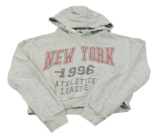 Svetlosivá crop mikina s nápisom a kapucňou Miss E-vie
