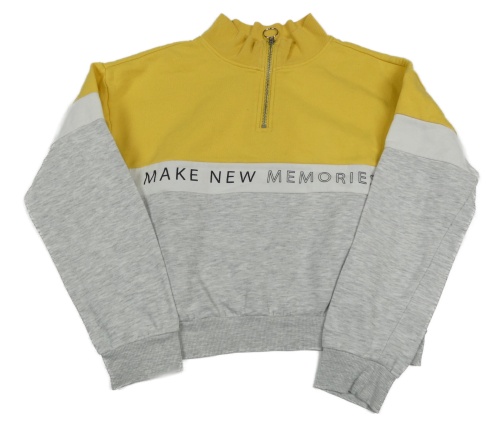 Žlto-bielo-sivá crop mikina s nápismi H&M