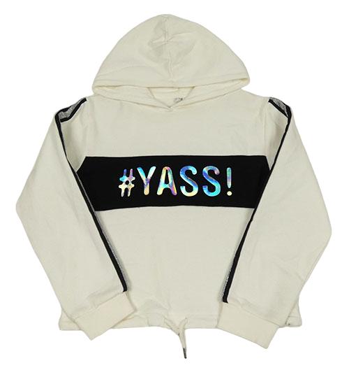 Smetanovo-čierna mikina s 3D nápisom a kapucňou C&A