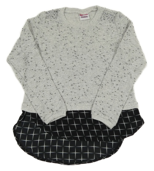 Sivý melírovaný trblietavý sveter s kamienkami a halenkou Yigga