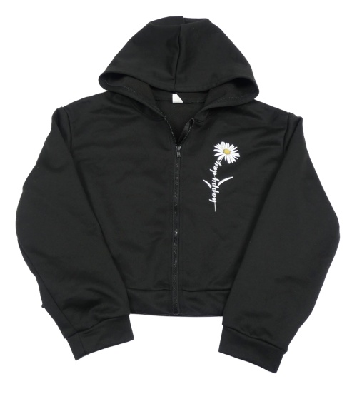 Čierna prepínaci crop mikina s kvietkami a kapucňou Shein
