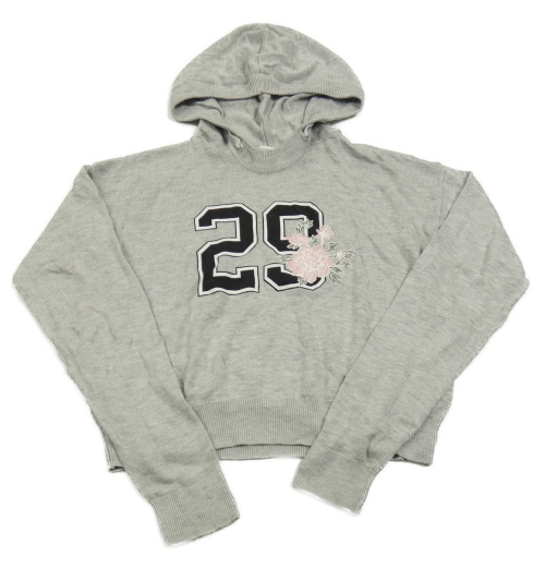 Sivý melírovaný ľahký crop sveter s číslom a kapucňou H&M