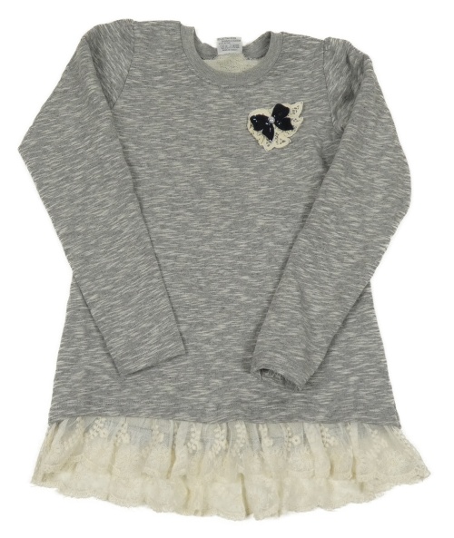 Sivá melírovaná mikina s mašlou a čipkovým volánikom