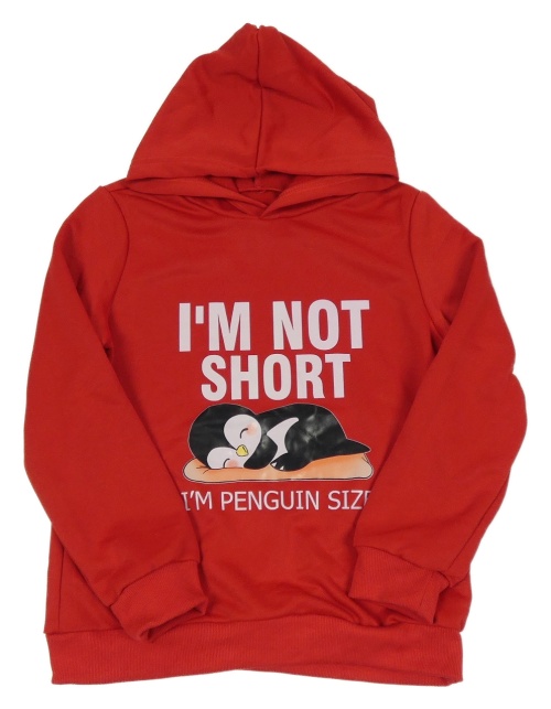 Červená mikina s tučňákem a kapucňou