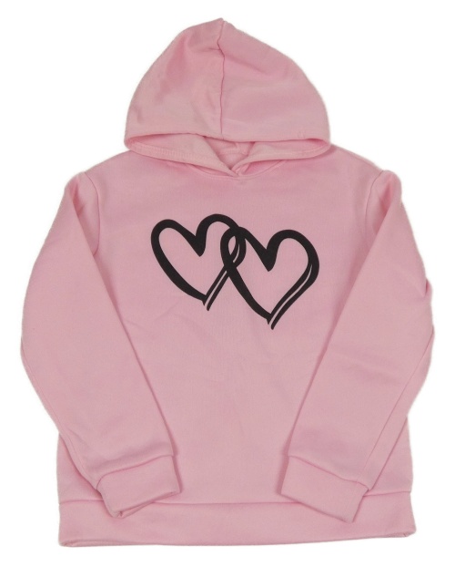 Svetloružová mikina so srdiečkami a kapucňou