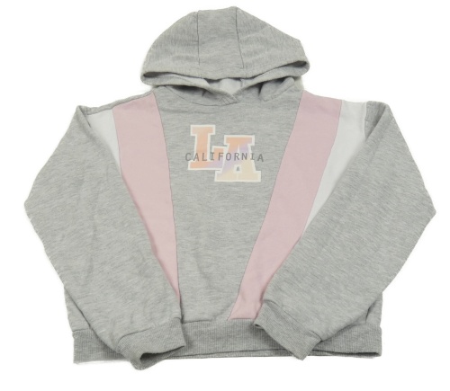 Sivo-ružovo-biela crop mikina s nápisom a kapucňou Primark