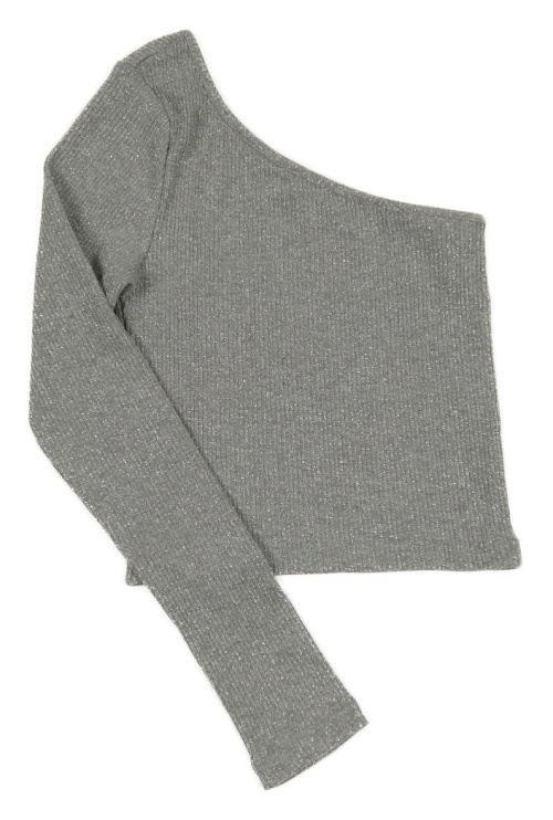 Strieborný trblietavý rebrovaný crop sveter s jedním rukávom H&M