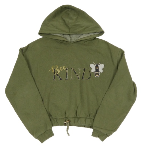 Khaki crop mikina s nápisem, včelou a kapucňou River Island