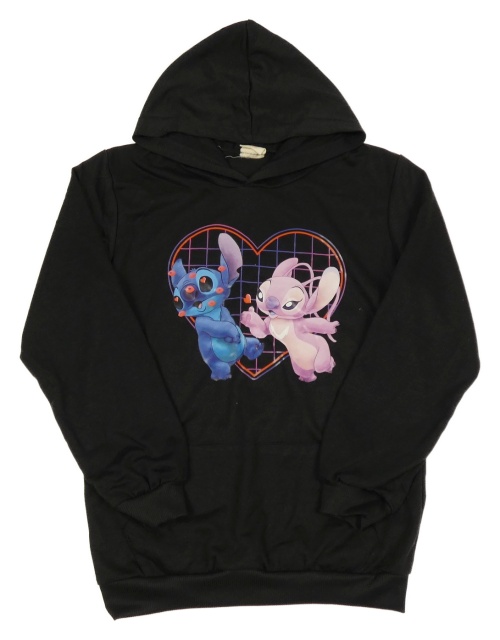 Čierna ľahká mikina so Stitchem s Angel a kapucňou