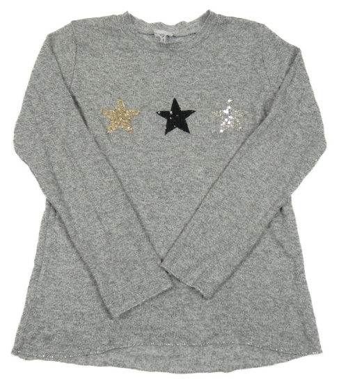 Sivý melírovaný ľahký sveter s hvězdami z flitrů