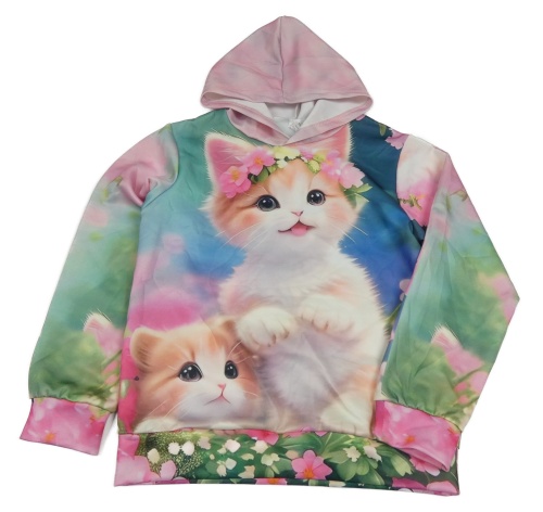 Ružovo-zeleno-modrá mikina s mačkami a kapucňou