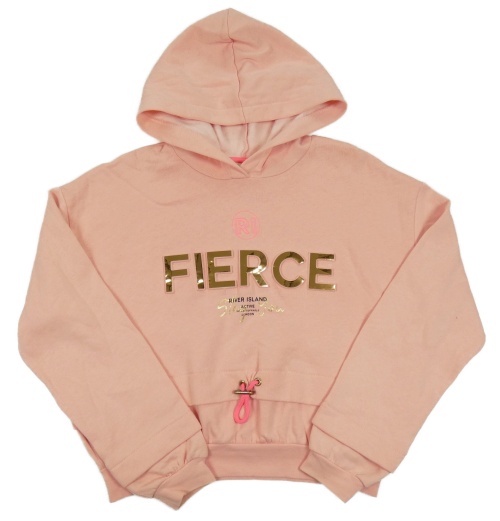 Svetloružová crop mikina so zlatým nápisom a kapucňou River Island