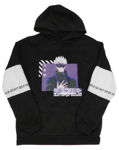 Čierno-biela mikina s potlačou a nápismi a kapucňou