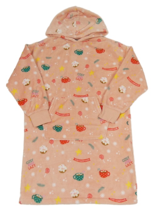 Broskvová chlpatá oversize mikina s hrnečky a kapucňou