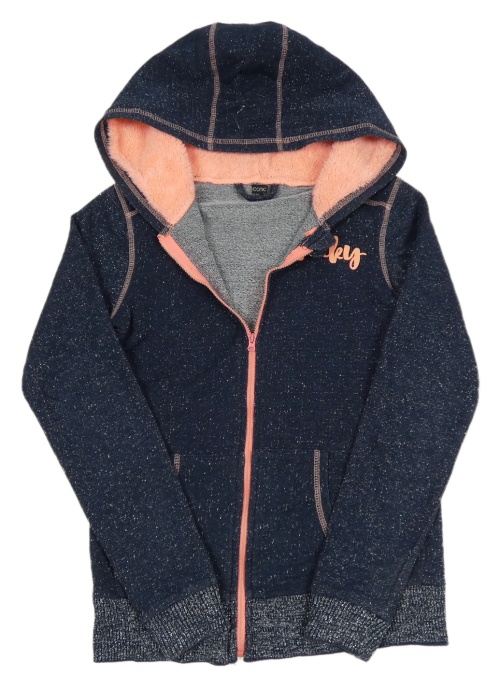 Tmavomodrá melírovaná trblietavá prepínaci mikina s nápisom a kapucňou