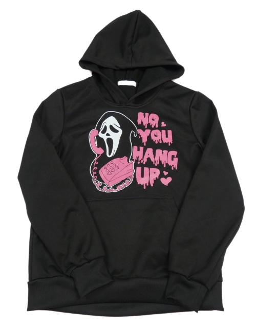 Čierna mikina s nápisom a duchem a kapucňou shein