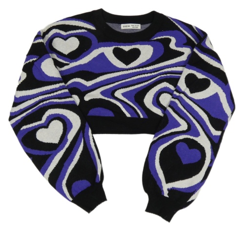 Čierno-fialovo-biely vzorovaný crop sveter Shein