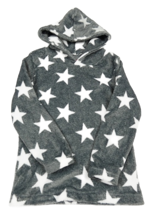 Sivo-biela chlpatá oversize mikina s hviezdami a kapucňou
