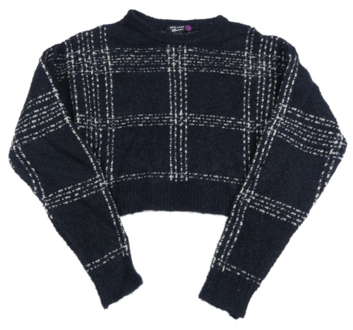 Tmavomodro-biely kockovaný crop sveter New Look
