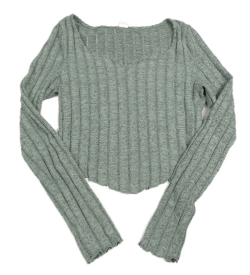 Šedozelené rebrované úpletové crop tričko shein