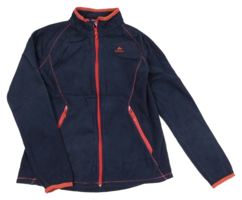 Tmavomodrá fleecová funkčná prepínaci mikina s červeným lemem a logom Quechua