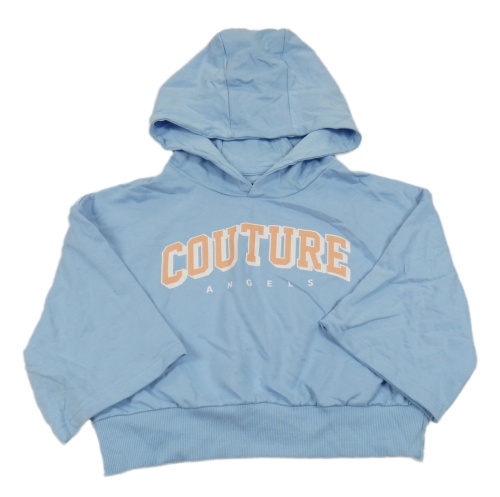 Svěltmodré teplákové crop tričko s nápisom a kapucňou