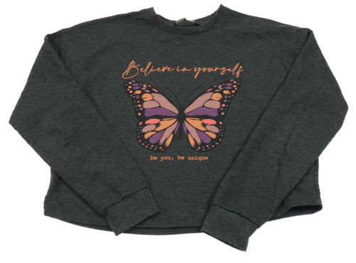 Tmavosivá melírovaná crop mikina s motýlkom George
