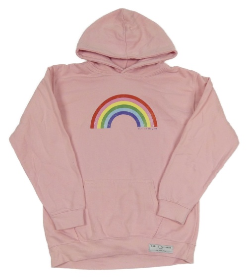 Svetloružová mikina s dúhou a vreckom a kapucňou